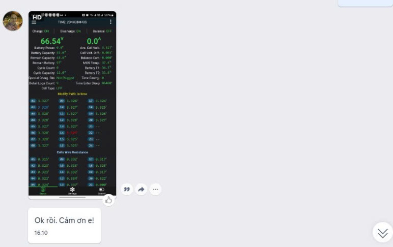 Khách cài đặt phần mềm và chạy test pin thực tế